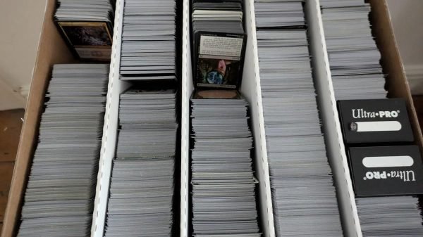 - ~30,000 loose bulk cards (rares, foils, uncommons, commons), ~500 promo cards/tokens/emblems, ~1,000 sleeved playsets
